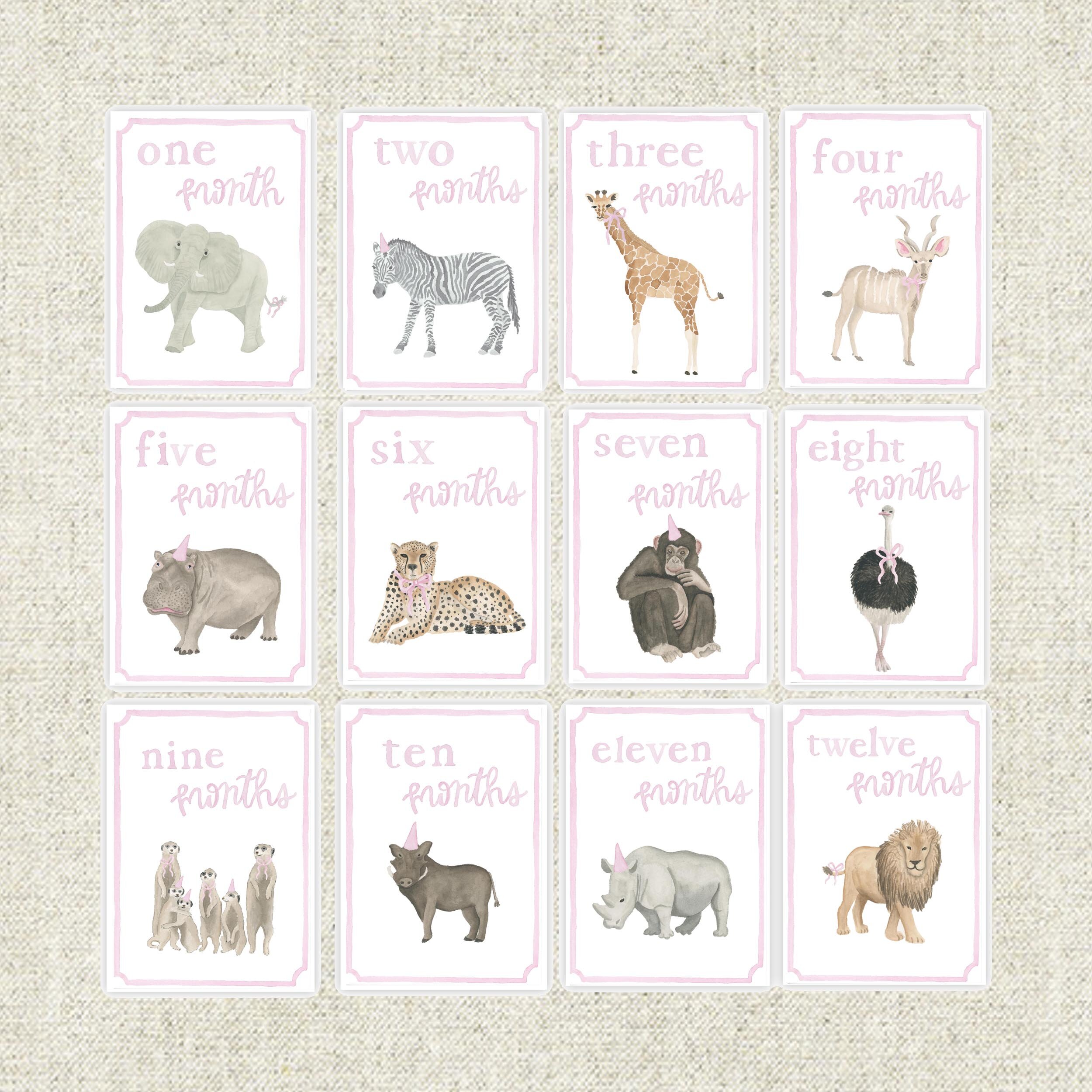 Celebrate each month of your baby’s growth and development with the cutest pink watercolor party animals around! Card set is 5” x 7”. Set comes wrapped in an acid-free cellophane bag and shipped in a rigid mailer.